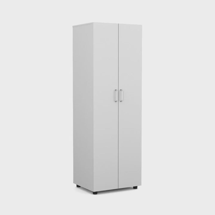 Elevate your storage game with the Barkley Armoire. Boasting a slim design that fits seamlessly into bedrooms or hallways, this unit offers a double-door entry to two upper inner shelves, perfect for folded items and accessories. Beneath, a dedicated hanging rod awaits your wardrobe, ensuring wrinkle-free readiness. Crafted with premium black and White manufactured wood.