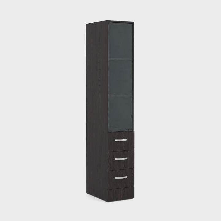 The Epic Linen Cabinet is a great product for your bathroom. It will provide you with that extra storage space perfect for storing your linens, towels, or toiletries. This Linen cabinet features a glass door cabinet at the top with three interior shelves to store any product you regularly use or more space for your linen. The bottom features four drawers for storing and keeping dry your linens, towels, or toiletries. In addition, this linen cabinet features the best quality of the hardware: Internal hinges made of steel, a full extension drawer slide for medium load, and pulls that are made of brushed nickel that provide an all-around better quality product. Designed with elegant Black manufactured wood finish.
